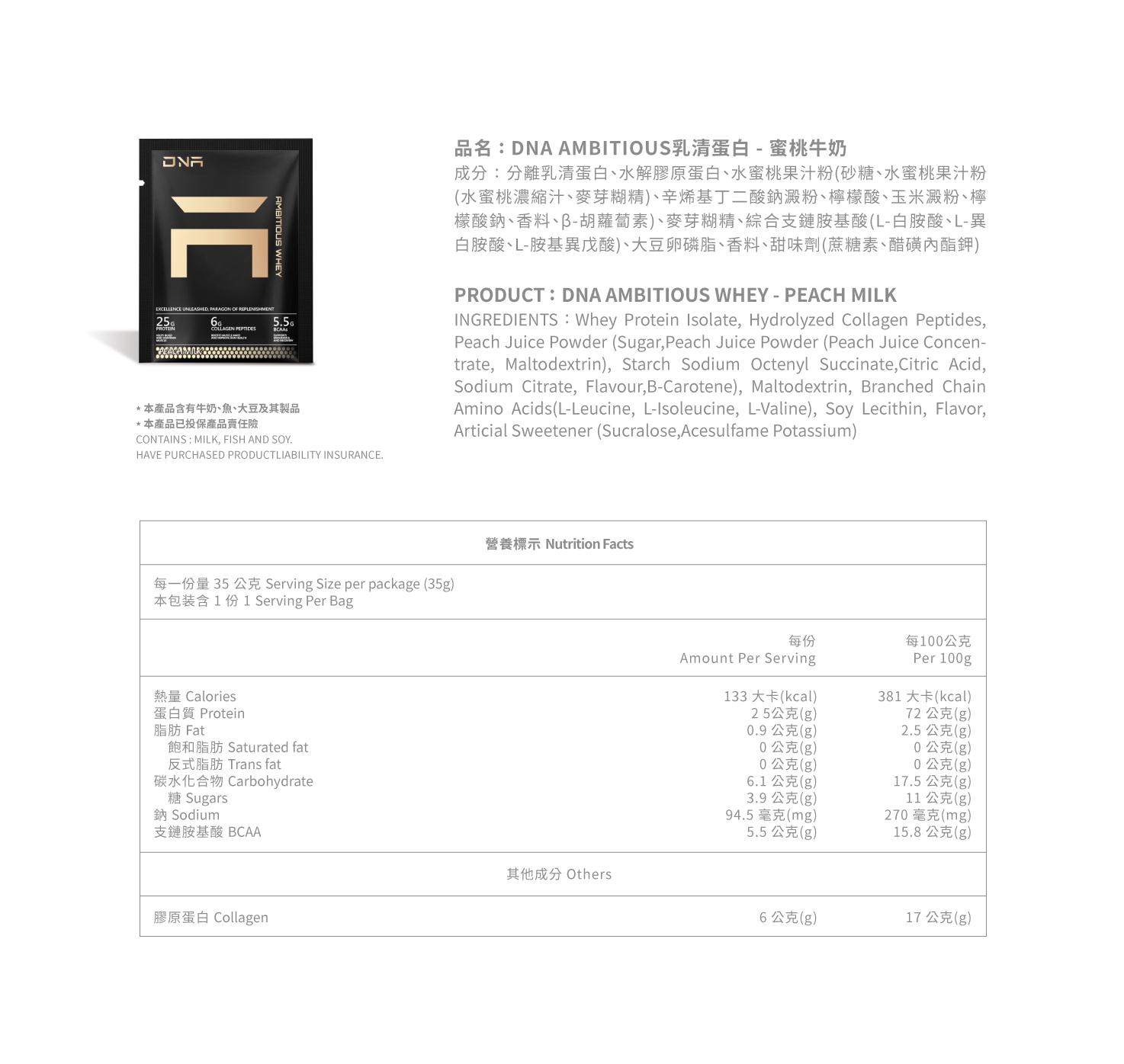 • 25G 蛋白質 × 6G 海洋膠原蛋白胜肽